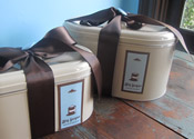 Back by popular demand, the gift tin has returned in two styles; traditional aluminum and a vintage oval-shaped beige tin. The large tin is filled with mini cupcakes, bars, cookies and confections. The small tins are filled with assorted bars and cookies. All gift tin