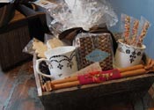We have a large selection of unique retail items like ceramic teapots, one-of-a-kind coffee mugs, teas and hot chocolate, chocolate bars, handmade caramels, vintage-inspired baking items, cookie jars and hard-to-find baking books. Let us build a custom gift basket for you. We can also incorporate your corporate branding. Call us for details.